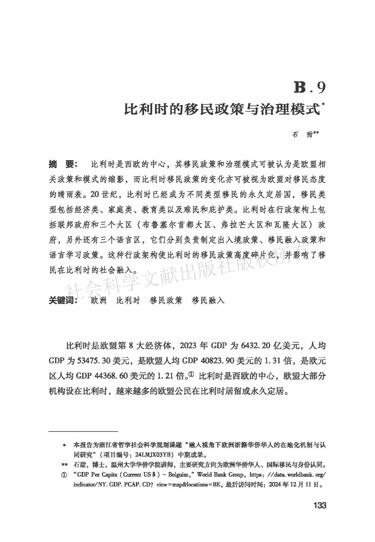 石甜:《比利时的移民政策与治理模式》,《欧洲移民发展报告(2024-2025)》,社会科学文献出版社,2025年12月,第133-152页